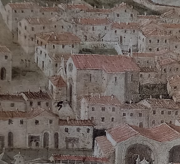( Particolare del dipinto olio su tela ‘Veduta di Portoferraio ”1705. Anonimo.