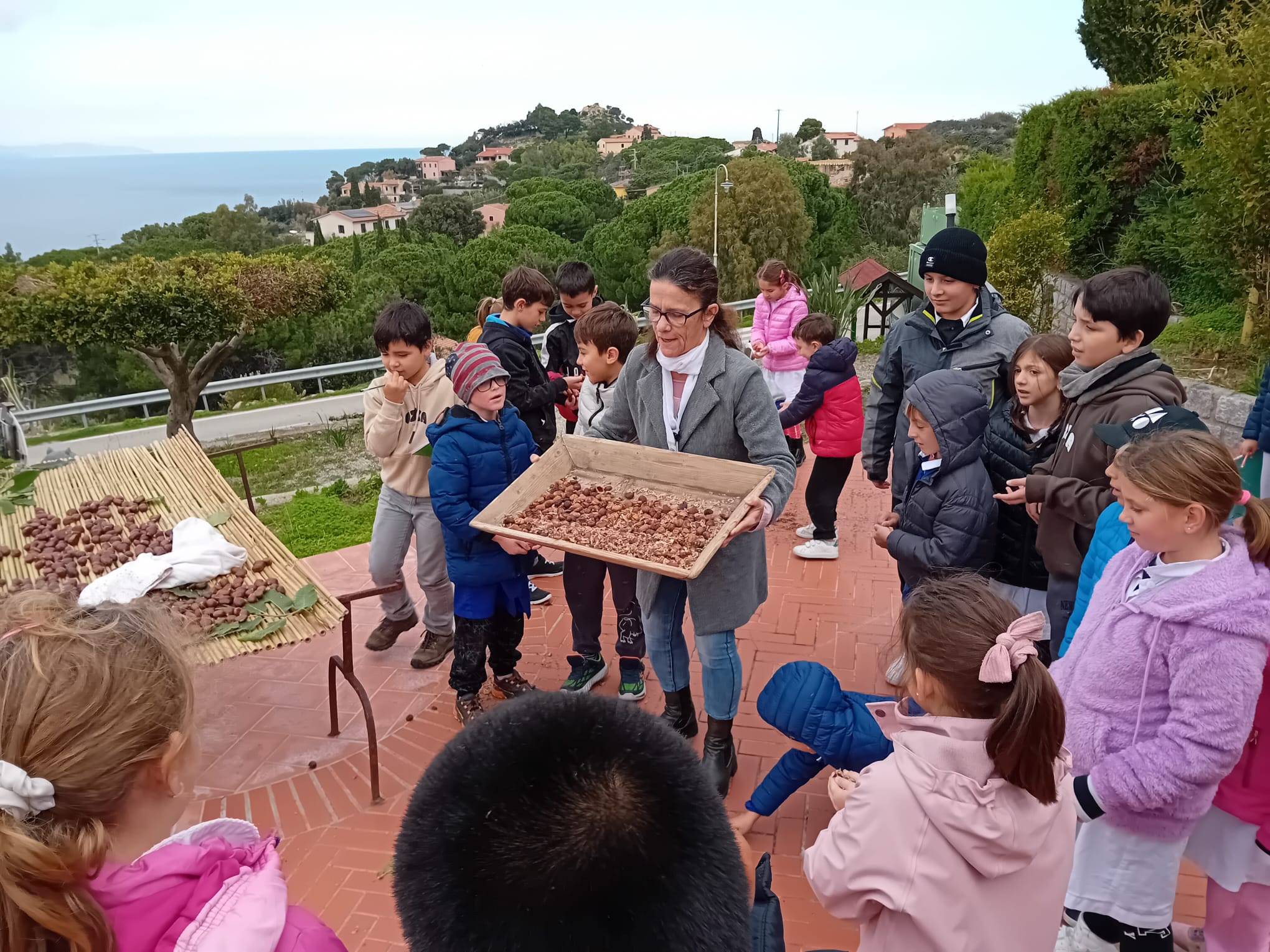 Conoscere le castagne e riscoprire la tradizione legata a questo frutto. E’ un progetto a cui partecipano i bambini della scuola primaria di Marciana. Si chiama “A Veglia” ed è stato proposto dalle insegnanti per far conoscere e recuperare le tradizioni di una volta nel versante occidentale dell’Isola d’ Elba. Non solo teoria ma anche esperienza sul campo, ed infatti nella mattinata di giovedì 14 novembre gli alunni della primaria marcianase, accompagnati dalle insegnanti Anna Bulgaresi, Angela Giretti e Beatrice Ferrini si sono recati a Patresi da Vincenzo e Matteo Anselmi per vedere dal vivo le fasi di lavorazione della castagna, fino ad arrivare al prodotto finito: il castagnaccio. Raccontano le maestre che è stata un’esperienza coinvolgente e motivante che ha portato i bambini in una sorta di gioco a squadre, dalla raccolta del frutto alla cottura del castagnaccio. Raccolte le castagne sono state poste sopra un graticcio al sole e quelle essiccate sono state messe in un paniere e portate al forno dove, devono restare per 24 ore ad una temperatura di 120 gradi. Terminato questo passaggio sono state messe dentro una sacca e battute. Quindi il frutto è separato dalla pula che “una volta – è stato spiegato ai bambini – serviva per alimentare il maiale ma anche per far maturare la frutta”. Poi le castagne sono state trasferite e macinate in un grande macinino elettrico e la farina così ottenuta è stata setacciata. E’ servita per preparare il pane di castagne e il castagnaccio che i bambini hanno potuto assaggiare. “Assaporandolo – fanno sapere le maestre – hanno individuato tutti gli ingredienti. Per loro questa è la prima esperienza ed è stata fantastica, interessante ed emozionante, ma anche impegnativa”. Il progetto non finisce qui, la prossima settimana potranno fare una nuova esperienza per conoscere altri utilizzi e lavorazioni di questo prezioso frutto del versante occidentale.