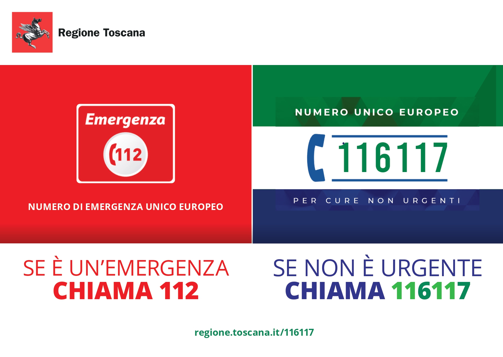 Da lunedì 18 novembre entrerà in funzione nei territori dell’ASL Toscana nord ovest il nuovo numero unico europeo 116117 per le cure non urgenti. Il 116117 sarà anche l’unico riferimento per contattare la continuità assistenziale (ex guardia medica) che sostituisce il medico di famiglia nei giorni feriali dalle 20 alle 8 del giorno successivo, nel fine settimana dalle 8 del sabato alle 8 del lunedì e nei giorni festivi infrasettimanali dalle 10 del giorno prefestivo alle 8 del mattino del primo giorno feriale. Chiamando l’116117 – duecento le linee attive in contemporanea – risponderanno operatori formati e medici qualificati.