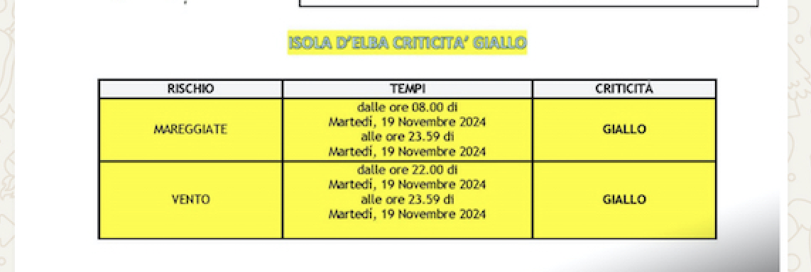 Allerta gialla per l’arrivo sull’Arcipelago venti forti di Libeccio. La sede della Protezione civile ha emanato l’avviso per vento e mareggiate. L’allerta è valida dalle ore 8 fino alla mezzanotte di domani, martedì 19 novembre.