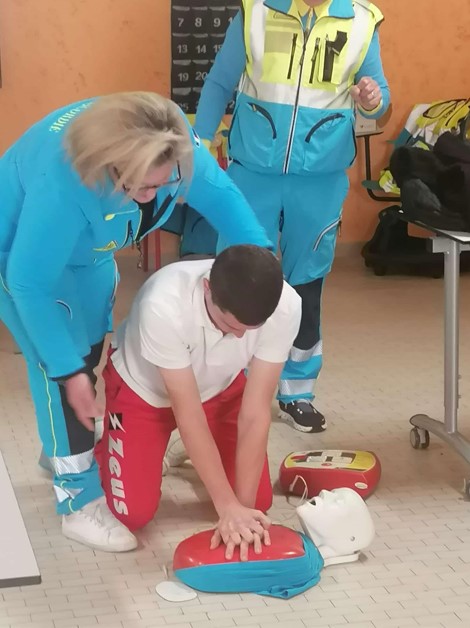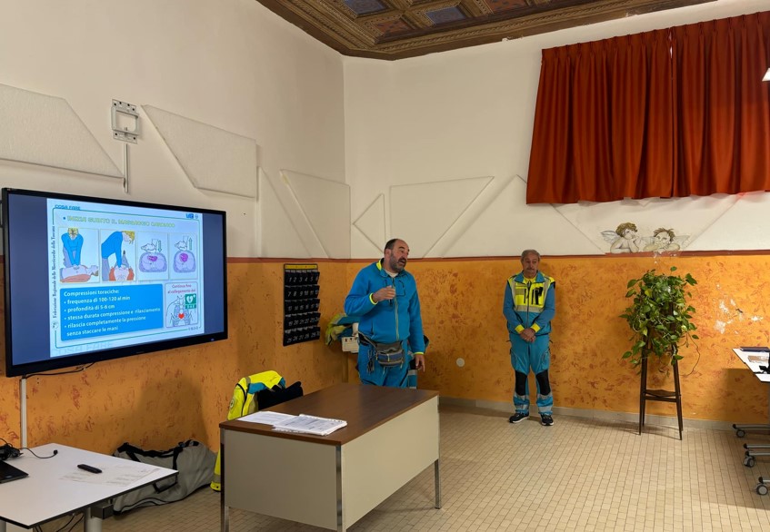 Sabato 16 novembre si è svolto nel plesso di Salita Napoleone il consueto corso BLSD promosso attraverso il progetto ASSO dalla federazione Misericordie e regione Toscana. A questo appuntamento hanno partecipato le classi 5A e 5B del liceo delle Scienze umane, ma nei giorni scorsi il corso aveva già interessato anche le classi Quinte Classico e Scientifico del plesso del Grigolo e prossimamente riguarderà anche gli studenti che frequentano le Quinte del plesso di Concia di Terra. Un’occasione importante di formazione per i nostri ragazzi che li aiuta ad essere cittadini responsabili. Dopo un primo momento di formazione teorica, i ragazzi si sono cimentati nella parte pratica, prendendo confidenza con l’uso del defibrillatore e con la manovra di Heimlich per la disostruzione delle vie aeree.