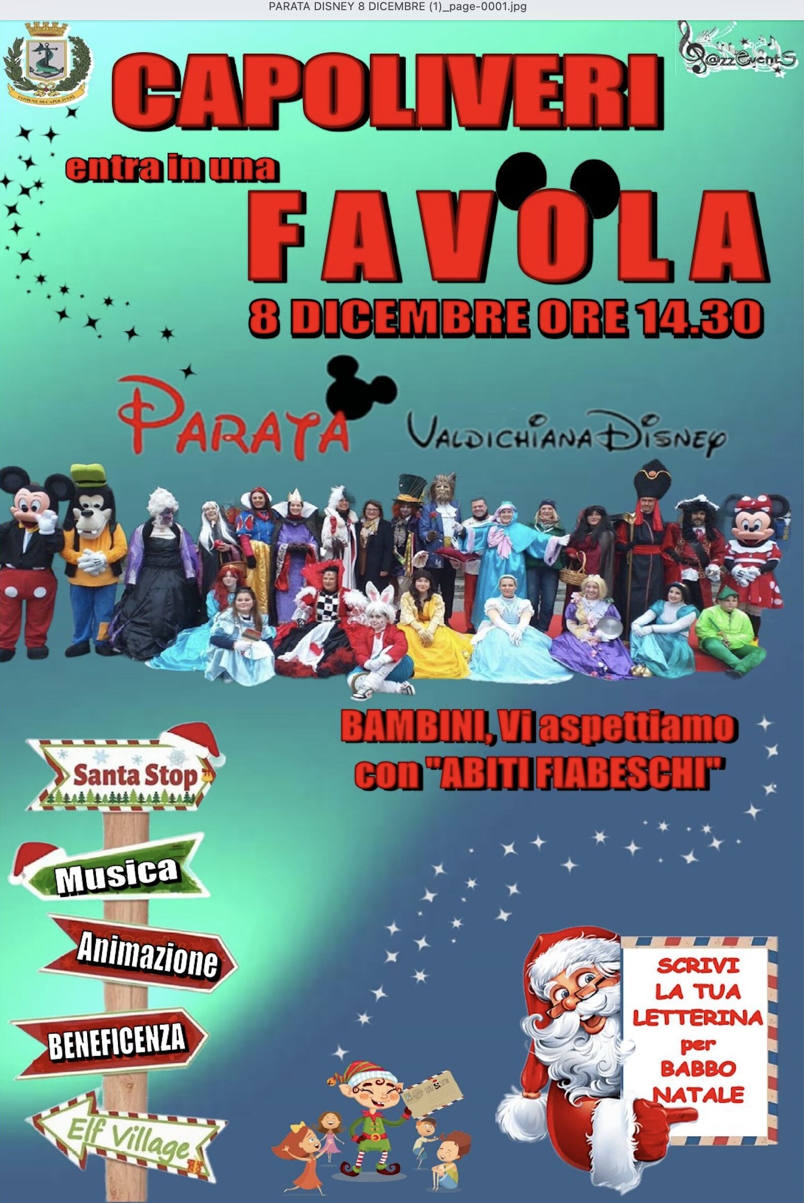 Domenica 8 Dicembre a Capoliveri in Piazza Matteotti, si terrà una parata dal titolo “AAAAARIBA TOPOLINO”. L’evento inserito nella programmazione delle feste natalizie è organizzato dall’amministrazione comunale di Capoliveri e dalla Fondazione Pazzevents. La giornata si aprirà alle 11.00 in piazza con l’intrattenimento in compagnia dei personaggi di Walt Disney. Sarà possibile fare le foto con Topolino Minnie e gli altri protagonisti dei cartoni. Saranno ben 40 gli interpreti Walt Disney presenti in piazza e tutti i bambini che saranno vestiti da personaggi dei cartoni, potranno aggregarsi. In contemporanea si aprirà il banchetto di lavoro (con Maura e Sarah). Qui, i bambini possono scrivere la letterina a Babbo Natale. Alle 12:30, i ristoratori e le pizzerie del paese mettono a disposizione, con uno sconto per l’occasione, i loro menù. Alle14:00 avrà inizio la parata che partirà dal comune e attraverserà tutte le vie del paese. Alle 15:30 è prevista l’esibizione della scuola di Jazzeceise. Nel frattempo Babbo Natale e gli Elfi attendono i bambini per ritirare e timbrare le letterine. Infine alle 16.00 intrattenimento musicale in compagnia di Giorgino. Numerose le associazioni di volontariato presenti con uno stands, fra queste, Tommasino Bacciotti, i sogni di Anna e Diversamente sani.