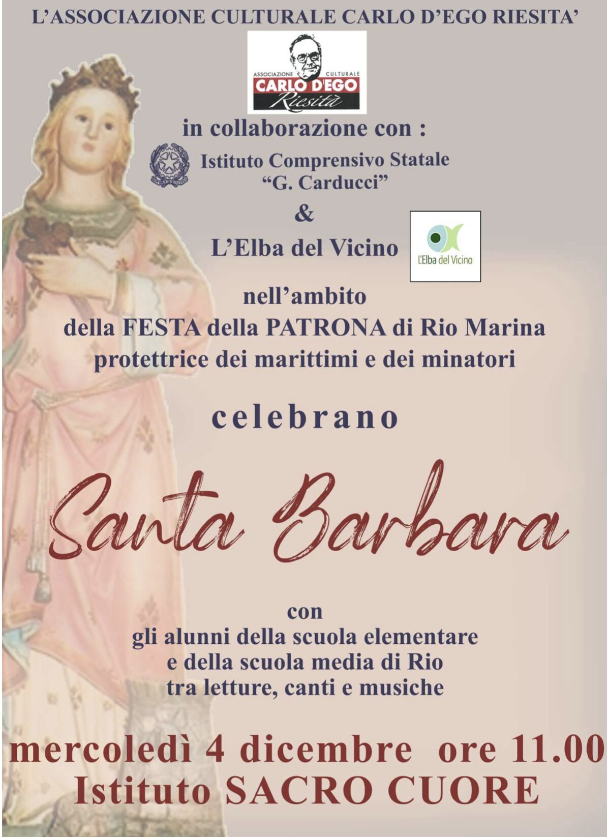Mercoledì 4 dicembre, nell’ambito del programma della Festa della patrona di Rio Marina, protettrice (tra gli altri) dei marittimi e dei minatori, presso l’Istituto Sacro Cuore a Rio Marina ed inizio alle ore 11.00, in collaborazione con l’Istituto Comprensivo Statale “G. Carducci” e L’Elba del Vicino, si svolgerà l’iniziativa organizzata dall’Associazione Culturale Carlo d’Ego – Riesità.