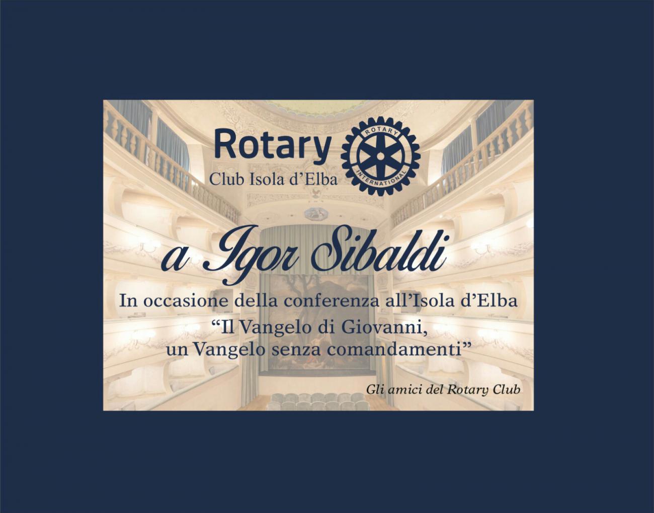 Il Rotary Club isola d’Elba, anticipando una prossima conferenza dal titolo “Dante e i catari” che, nel mese di Maggio, sarà tenuta dalla saggista italiana Maria Soresina, ringrazia innanzitutto Igor Sibaldi e la sua compagna Silvia Pernarella per l’amicizia verso il Club che hanno mostrato nei due giorni trascorsi assieme, l’amministrazione comunale tutta per l’affiancamento e la collaborazione data per la riuscita dell’evento, la Cosimo de medici srl per la messa a disposizione del teatro, la libreria Mardilibri per la disponibilità e la professionalità fornita e, soprattutto, tutti i numerosi intervenuti poiché è solo grazie a loro che il nostro territorio è riuscito a dare una risposta più che ottima alla conferenza.
