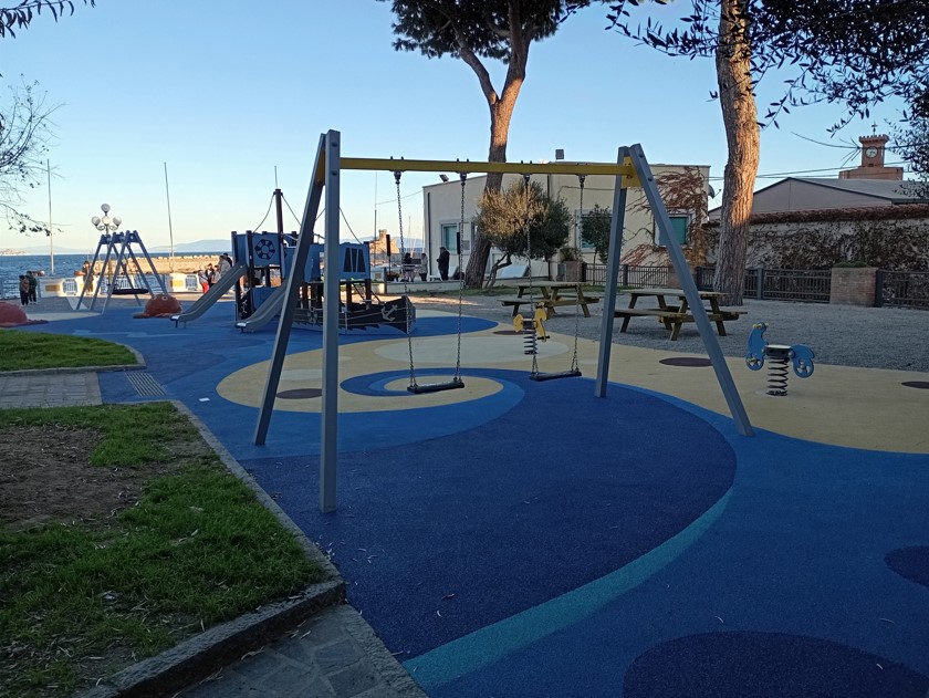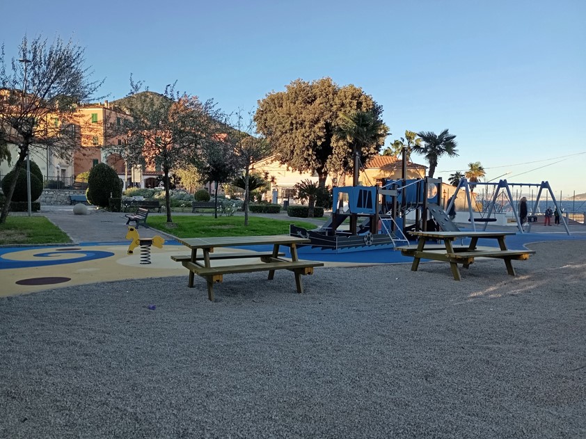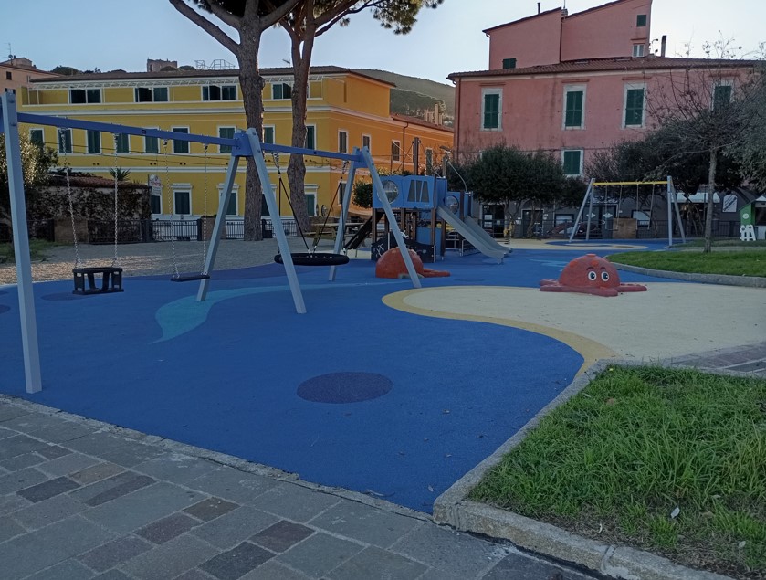 Subito dopo, sono stati aperti e consegnati alla cittadinanza i rinnovati Giardini Pubblici di Rio Marina. Oltre alla messa in sicurezza e alla eliminazione dei problemi legati alle radici dei pini, la rinnovata disposizione dell’area ludica ha reso possibile, insieme alla nuova logistica interna dei giochi e delle sedute, una migliore continuità con le aree circostanti dei giardini pubblici e delle terrazze degli Spiazzi, completando così un’altra casella del rinnovamento di una delle zone urbane più frequentata dai cittadini. Il costo dei lavori realizzati è di circa 80mila euro.
