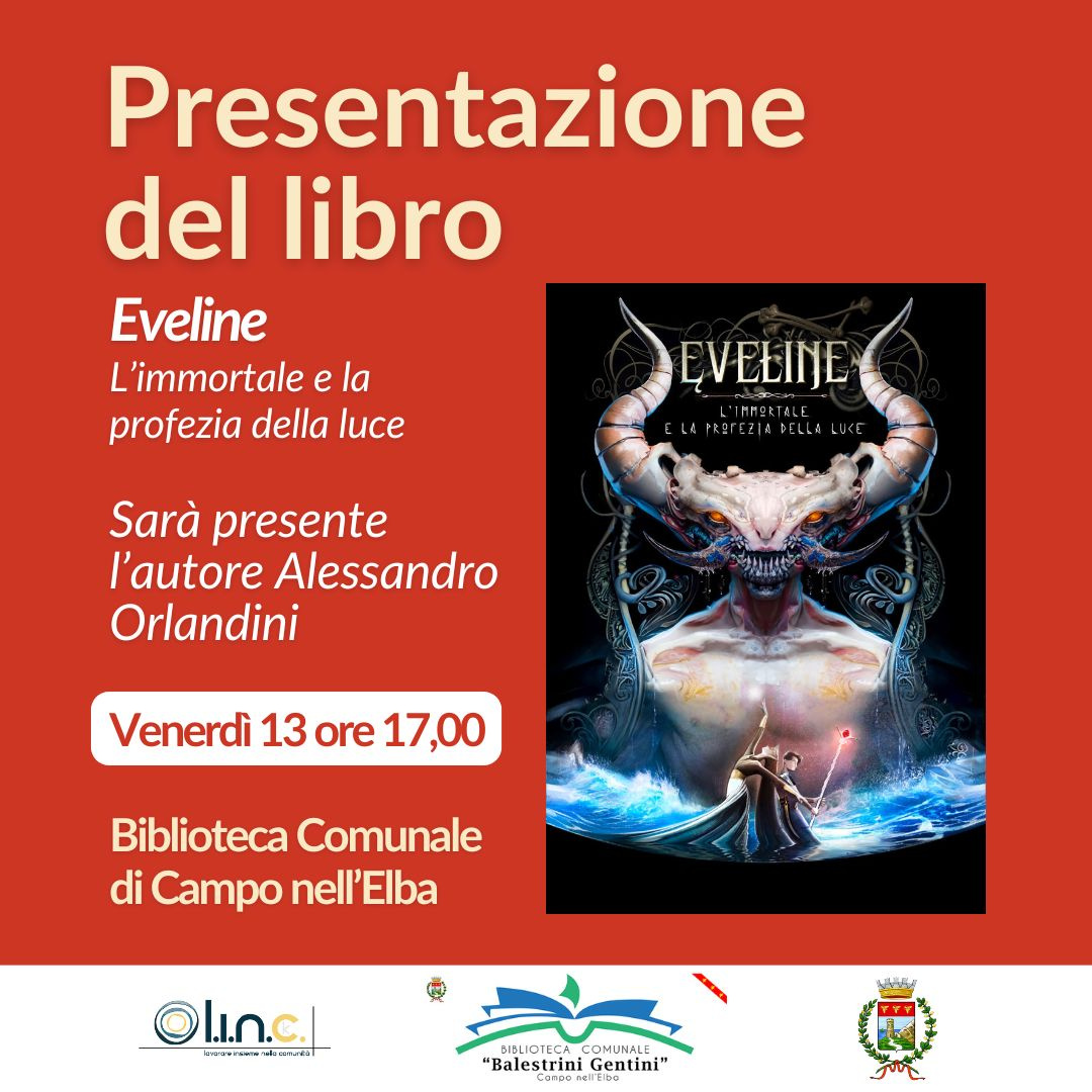 siete invitati venerdì 13 dicembre alle ore 17,00 alla presentazione del nuovo libro di Alessandro Orlandini “Eveline. L’immortale e la profezia della luce”, edito da Chiaredizioni.