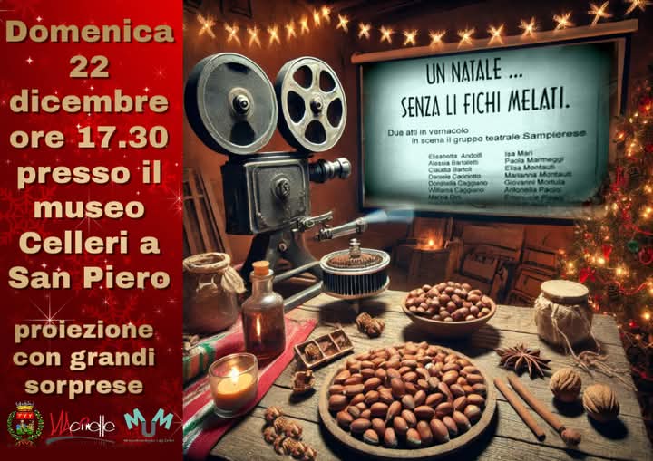 Domenica 22 : proiezione del video “ Un Natale senza i fichi melati” , commedia del 1996.. ma poi non si sa quello che potrà succedere nel risvegliare golosi ricordi e la memoria delle battute! Ricordiamo che i fichi melati sono il dolce locale tipico delle feste ed una autentica leccornia DOP.