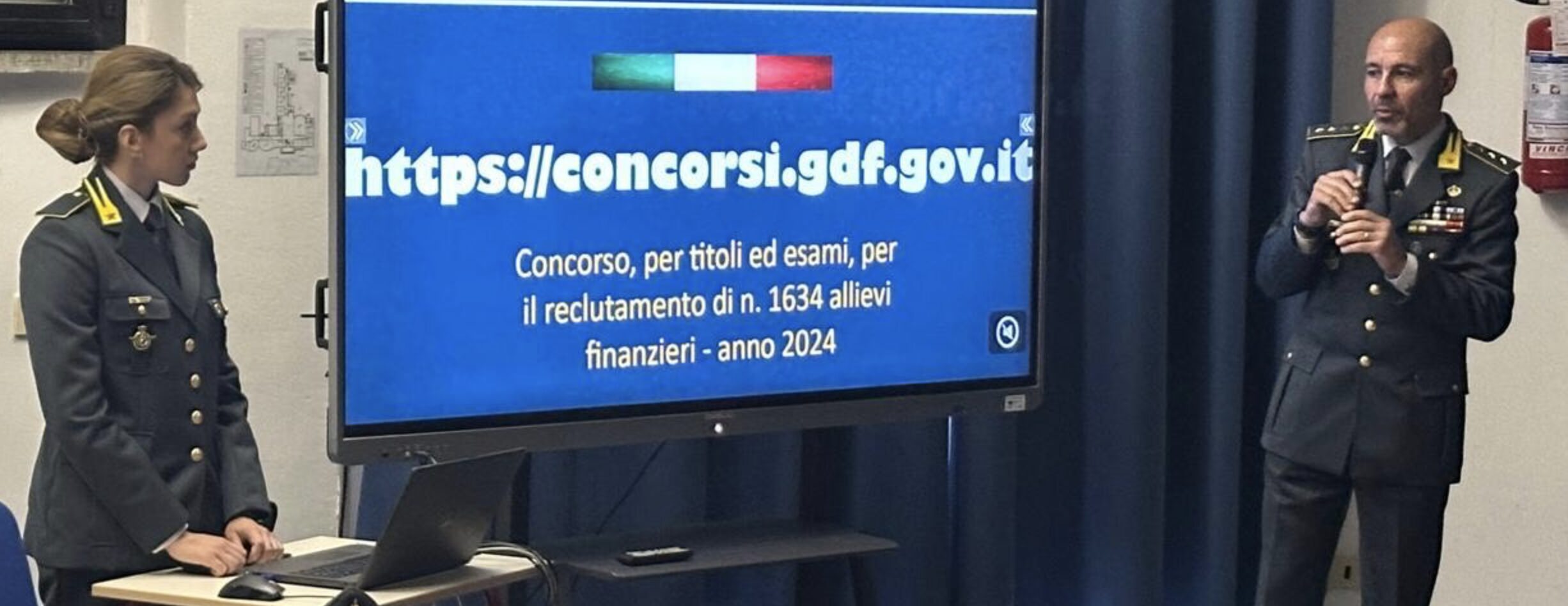 I rappresentanti della Guardia di Finanza hanno presentato il nuovo bando di reclutamento, illustrando le opportunità di carriera e il ruolo del Corpo nella tutela della legalità e della sicurezza economica.