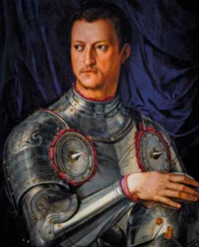 (Ritratto di Cosimo I de’ Medici in armatura eseguito da Agnolo di Cosimo detto il Bronzino.Dipinto olio su tavola. 1545 circa. Galleria degli Uffizi.Firenze )