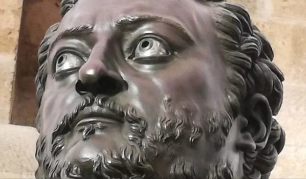 (PARTICOLARE del volto di Cosimo I de’ Medici. Busto in bronzo di Benvenuto Cellini. Museo del Bargello. Firenze)