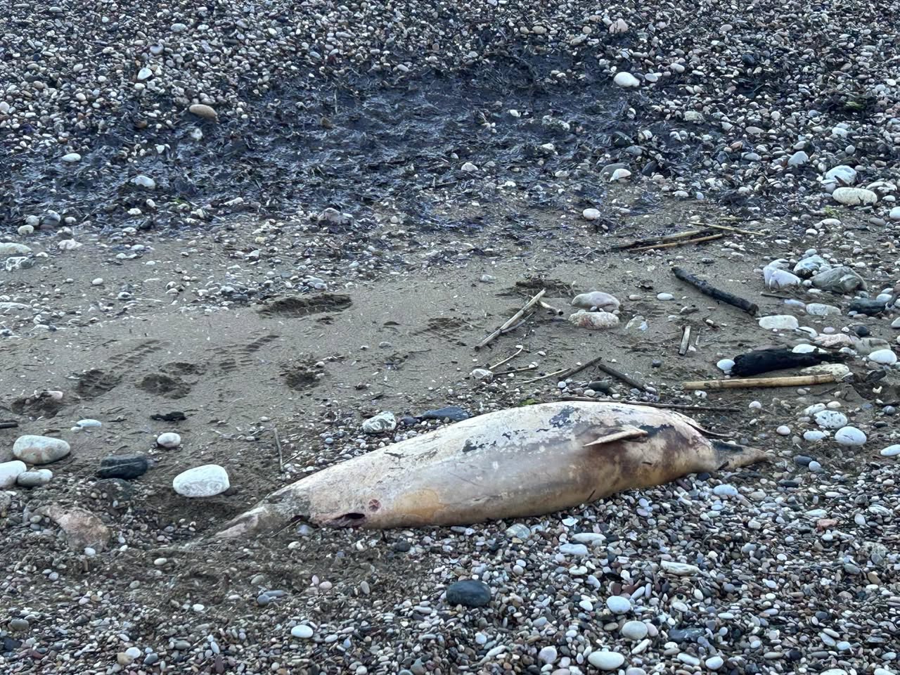La carcassa di un piccolo delfino portata dalle correnti marine su una delle spiagge dell’isola è stata ritrovata all’Elba, L’esemplare era in avanzato stato di decomposizione . La foto è stata scattata da Luca Bellosi e postata sulla sua pagina Facebook