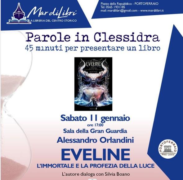 Con il nuovo anno riparte anche la rassegna di Mardilibri “Parole in clessidra” ed il primo appuntamento è con il nuovo libro di Alessandro Orlandini, il primo volume di una nuova saga. L’appuntamento è per sabato 11 gennaio alle ore 17 nella sala della Gran Guardia dove l’autore dialogherà con Silvia Boano. Il libro parla di Eveline, un’immortale con poteri magici, che con Noran si avventura per salvare l’umanità, affiancati da creature mitiche. Nel loro viaggio per unire le antiche razze affrontano ostacoli e un amore contrastato dall’imperatore Fandor. Questo è il primo volume della trilogia della luce, dove eroi diversi combattono il male attraverso varie epoche. La presentazione di sabato è organizzata da MardiLibri in collaborazione con la Pro Loco Portoferraio.