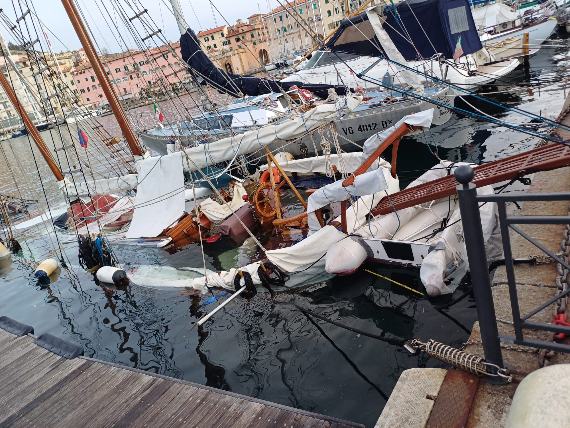 Un’imbarcazione ancorata nella darsena medicea di Portoferraio, davanti alla Capitaneria di Porto è affondata questa mattina. L’imbarcazione è di proprietà di un cittadino svizzero abitante all’Elba. Non erano ancora le 7 quando la Cosimo de Medici, la società partecipata che gestisce l’approdo è stata allertata in quanto la Barbanera, questo il nome della barca, di circa 10 metri, ormeggiata alla banchina della Linguella stava andando a fondo. Sul posto sono giunti tempestivamente il personale della Cosimo De Medici, della Capitaneria di Porto, della Guardia di Finanza e i Vigili del Fuoco. Ma ben poco si è potuto fare. Ancora sconosciute le cause che hanno portato il natante ad imbarcare acqua fino ad affondare. Ora la parola passa agli operatori subacquei perché al più presto con i palloni possano far tornare la barca in superficie. Intanto sono state posizionate in acqua le apposite panne in modo da tutelare la zona da eventuali sversamenti di idrocarburi.