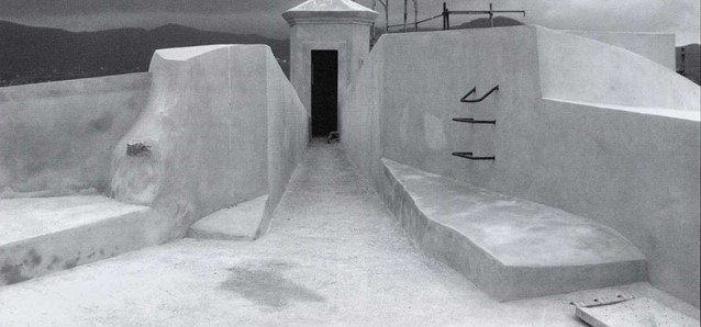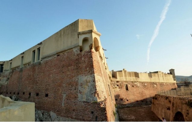 (Portoferraio. Forte Falcone. Fronte bastionato verso nord. Sull’angolo del fronte è visibile basamento di garitta posta sull’ antico camin di ronda sopra cui è stato costruito immobile oggi adibito a museo)