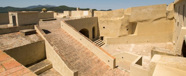 (Portoferraio . Cortile interno di forte Falcone.Rampa di accesso che serviva per raggiungere dall’ingresso il cortile interno.Stato attuale )