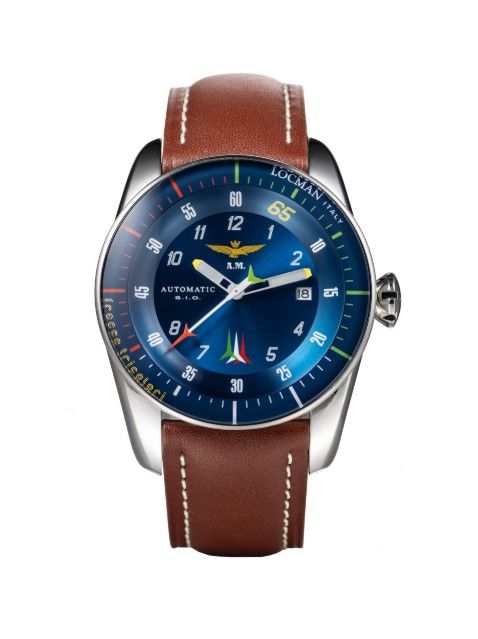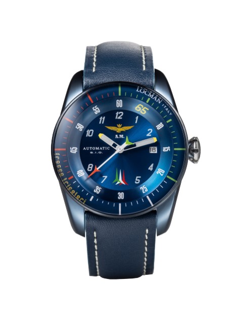Aviatore Frecce Tricolore Automatic con cassa acciaio 316L rivestita PVD blu, fondo titanio: 980,00 euro.wew.locman.it