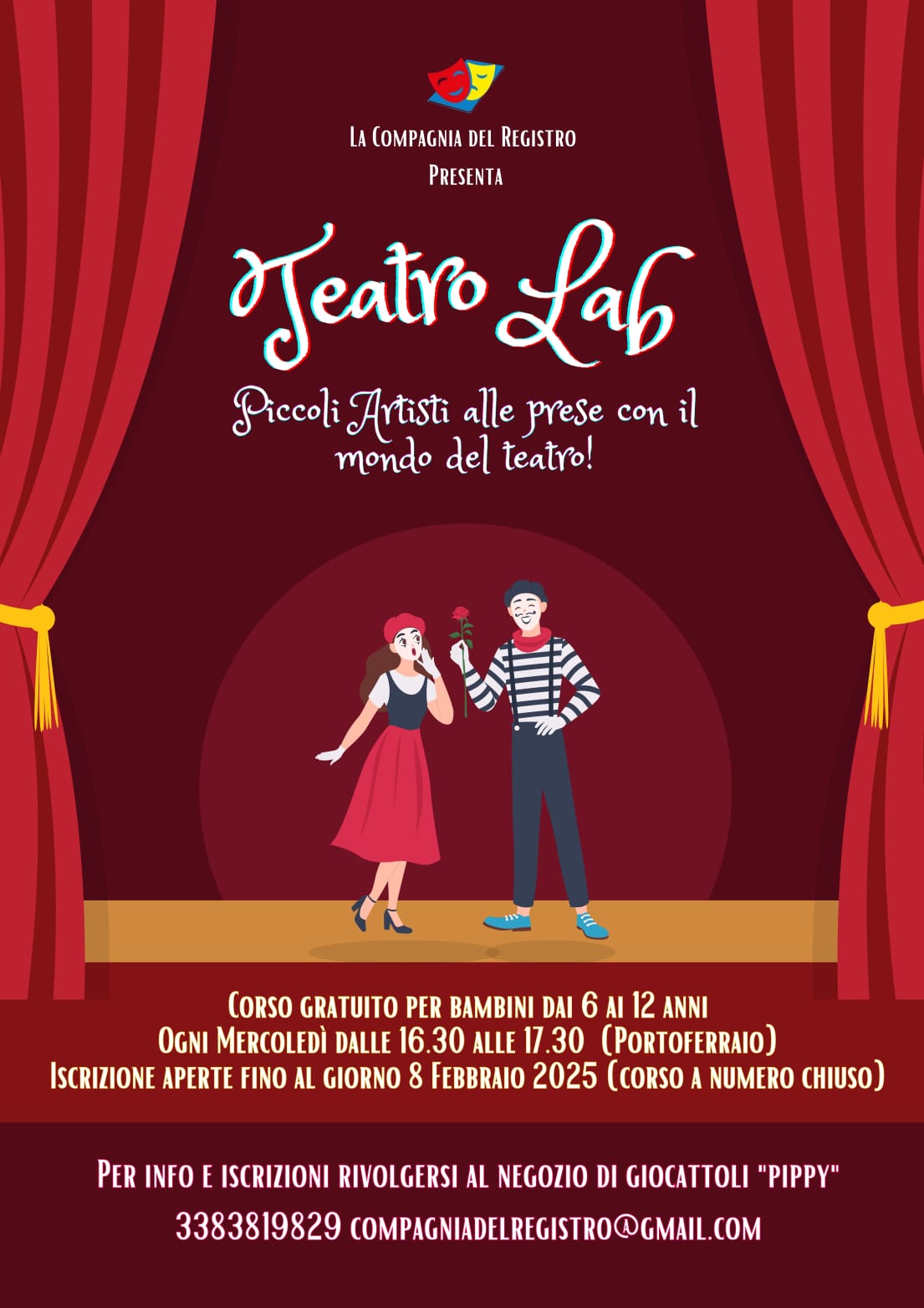 L’ Associazione Culturale “La Compagnia del Registro”, dal 2013 impegnata nella promozione dell’arte e della cultura teatrale, è lieta di annunciare l’apertura delle iscrizioni al nuovo corso di teatro dedicato ai ragazzi dai 6 ai 12 anni.