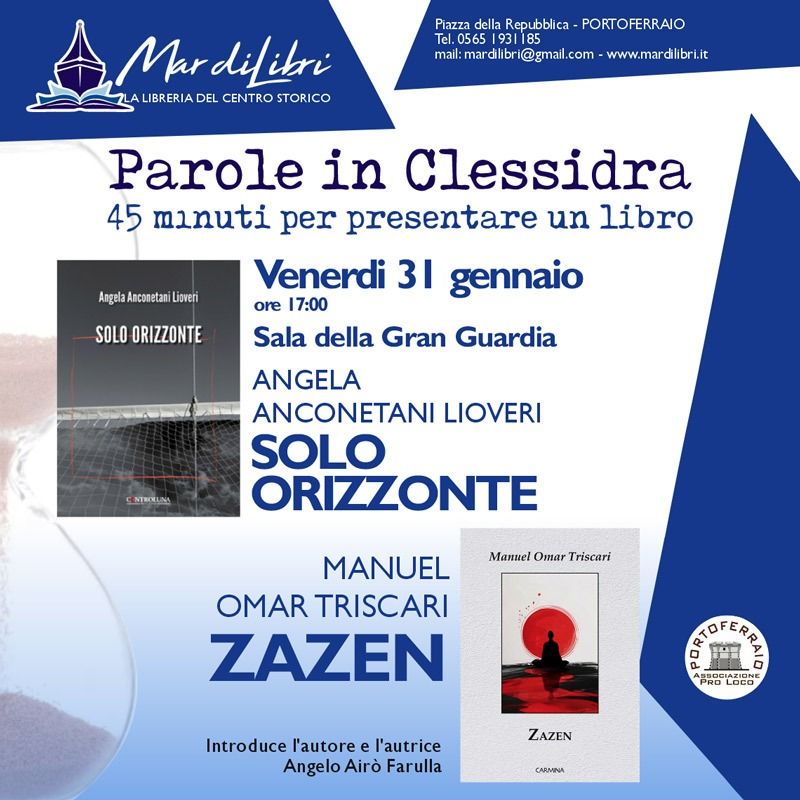 Venerdì 31 gennaio, alle ore 17,00, presso la Sala della Gran Guardia di Portoferraio, in collaborazione con la Proloco, nuovo appuntamento con “Parole in clessidra”, la rassegna letteraria di Mardilibri che presenta in 45 minuti i libri di scrittori e scrittrici legati al territorio elbano e non solo, in tutti i periodi dell’anno.