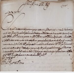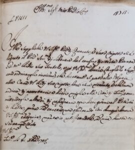 (Carta 325 .Filza “Lettere diverse sino all’anno 1709 al tempo dell’illustrissimo sig Barone Alessandro del Nero”.C9. Carteggio del governatore .Archivio del governo di Portoferraio 1553-1799.Archivio storico comune Portoferraio)