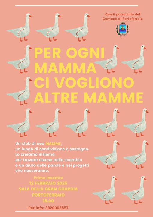 Si terrà presso la Sala della Gran Guardia alle 16 di mercoledì 12 febbraio il primo incontro del “Club delle Mamme”, una nuova iniziativa, patrocinata dal comune di Portoferraio, consistente nel realizzare una rete di solidarietà tra le