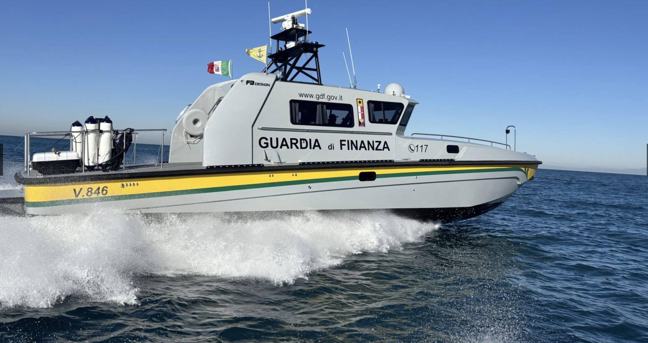 Presso gli ormeggi della caserma “Tullio Santini” di Livorno è giunta la vedetta costiera V.846 di nuova costruzione, assegnata alla Stazione Navale della Guardia di Finanza nell’ambito del più ampio e strategico piano di ammodernamento e potenziamento della flotta navale del Corpo.