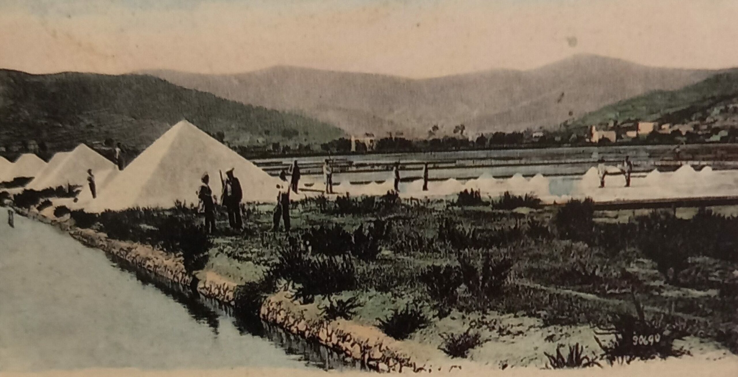 (Portoferraio .Saline granducali . Forzati al lavoro controllati da guardie armate di fucile.)