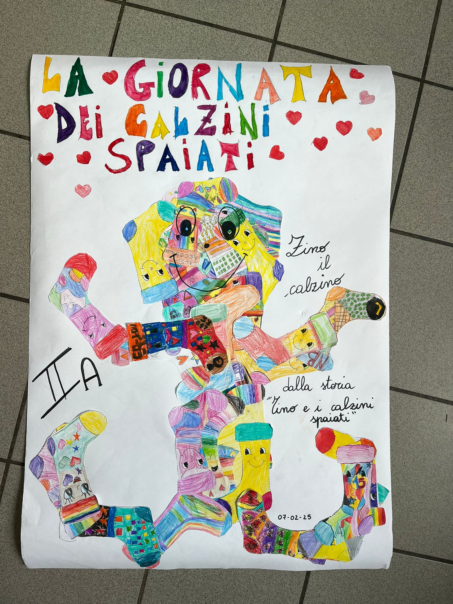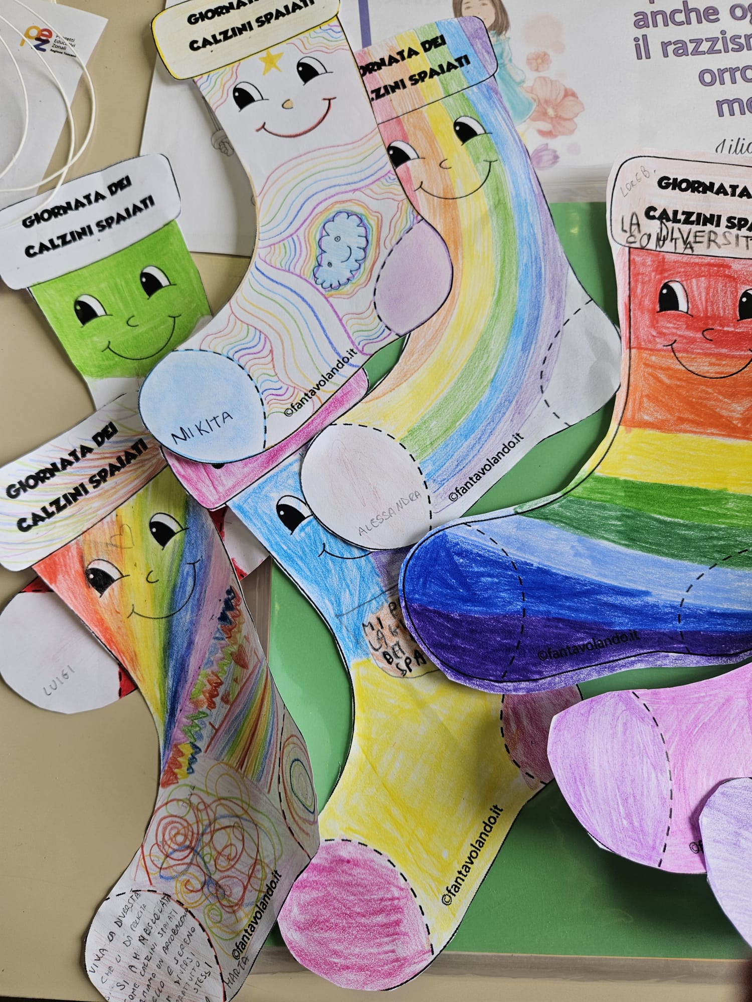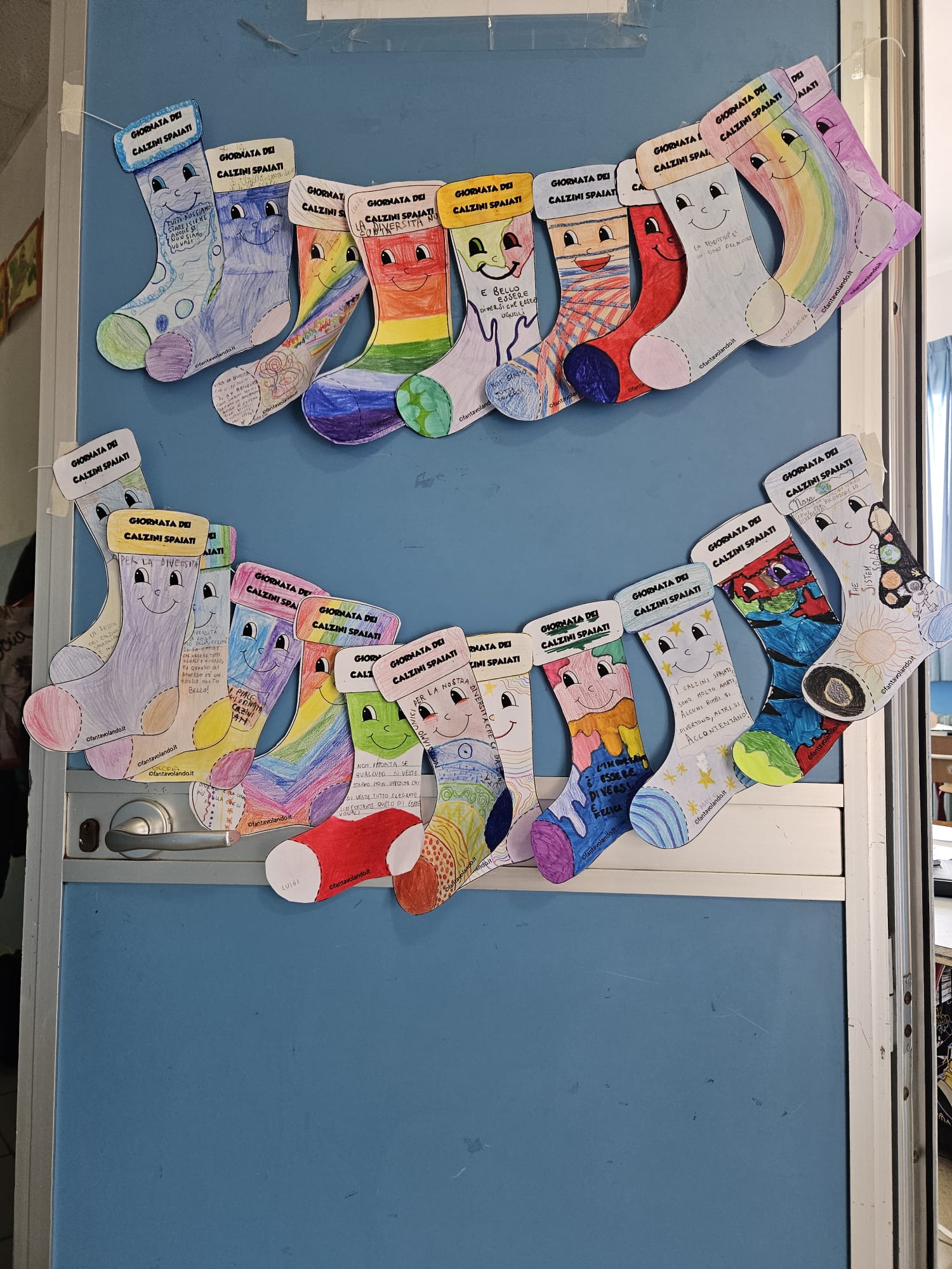 “Il simbolo dei calzini spaiati – racconta l’insegnante Enrica Petricci – viene utilizzato per rappresentare l’unicità di ogni individuo. L’idea dietro questa celebrazione è quella di veicolare il concetto che, anche se alle volte ci si può sentire “spaiati” o diversi dagli altri, questa diversità è qualcosa da accogliere e valorizzare. I calzini spaiati sono la metafora perfetta per promuovere l’inclusione”. Ognuna delle dodici classi del plesso ha partecipato attivamente e in modo creativo a questa iniziativa per favorire il dialogo, la consapevolezza e il rispetto di ogni individuo. Un gesto semplice che pone l’accento sull’importanza di sentirsi tutti parte di un unico mondo, seppur con le nostre peculiarità.