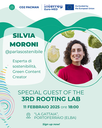 11 febbraio 14:00 – 18:00 La Gattaia, Portoferraio (ingresso libero previa registrazione al link 3rd rooting LAB Elba Island – Interreg Euro-MED – CO2 PACMAN) con la partecipazione di Silvia Moroni “Parla Sostenibile”