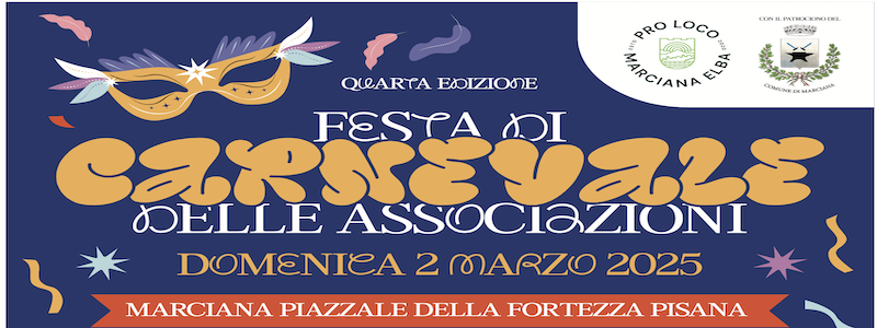 Giunta ormai alla quarta edizione, la Festa di Carnevale delle Associazioni del versante marcianese quest’anno viene proposta a MARCIANA domenica 2 MARZO Questo il programma: Alle ore 12:00 la sfilata delle maschere da Piazza For di Porta al Piazzale delle Fortezza, a seguire l’apertura degli stand gastronomici e la musica dal vivo. Nel primo pomeriggio giochi per grandi e piccini (pentolaccia, tiro alla fune, corsa coi sacchi)