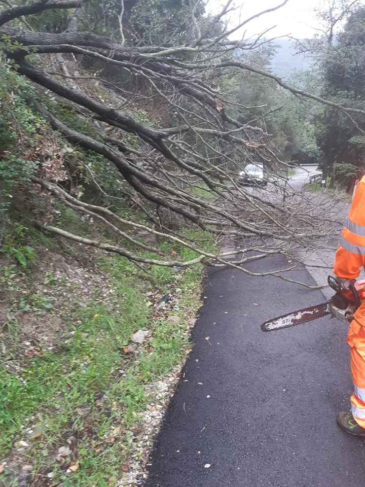 I maggiori problemi si sono verificati sulla SP 25 Anello Occidentale, dove anche oggi si è reso necessario l’intervento dei Vigili del Fuoco, nel tratto in località le Sprizze, per un pino caduto sulla carreggiata.