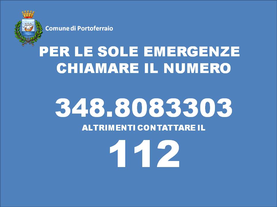 E’ stato istituito dal COC del Comune di Portoferraio un numero da chiamare PER LE SOLE EMERGENZE, che è il 348. 8083303.
