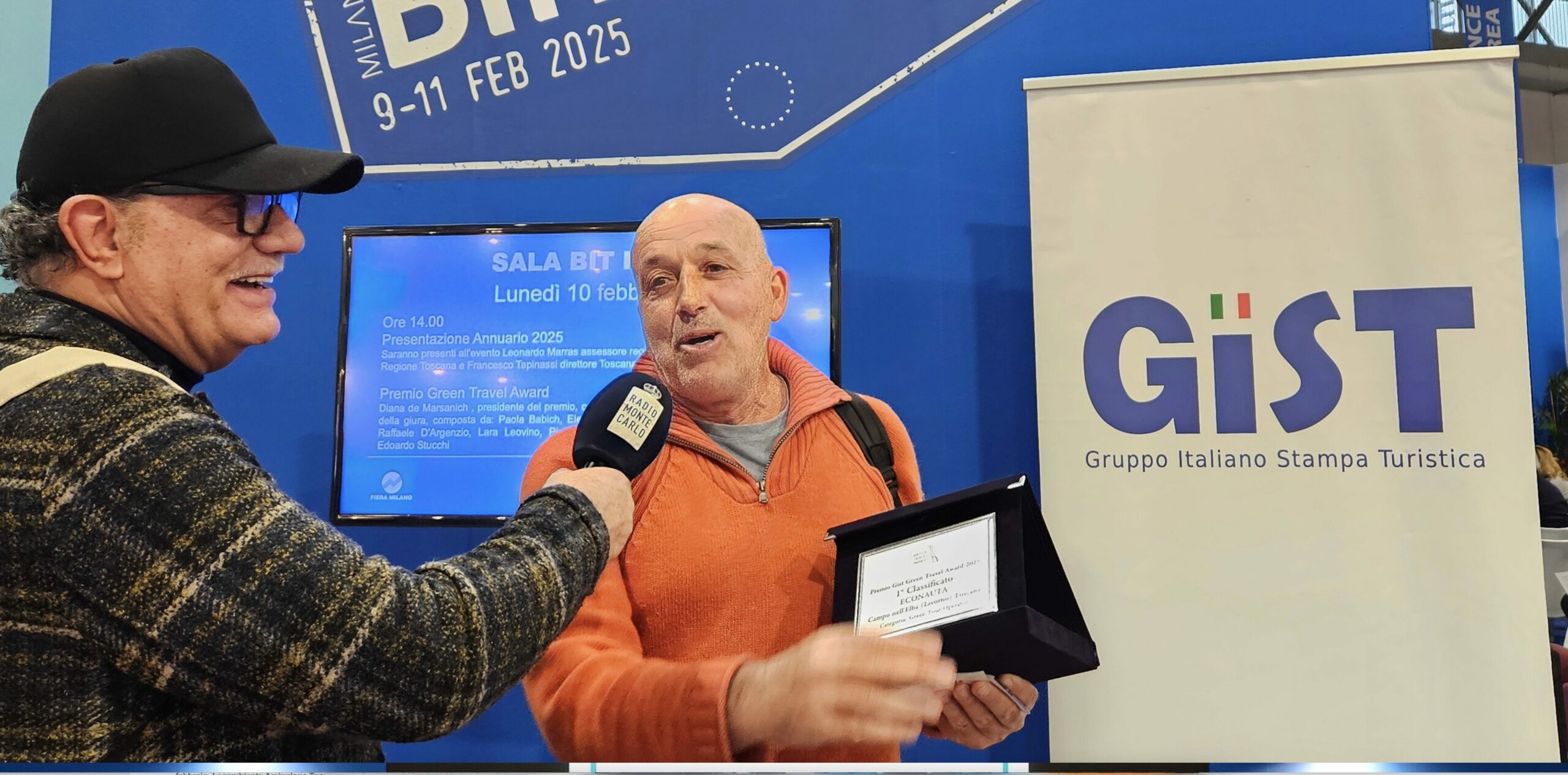 Il prestigioso riconoscimento organizzato dal Gist, Gruppo Italiano Stampa Turistica, che premia le eccellenze del turismo sostenibile e responsabile, è stato consegnato all’Elbano Umberto Segnini titolare di Econauta, per la categoria Best Green Tour Operator. Il premio, giunto alla tredicesima edizione, è stato assegnato nel corso della manifestazione che si è svolta lunedì 10 febbraio alla Bit di Milano, con la seguente motivazione: “Il tour operator elbano propone esperienze alla scoperta del ritmo lento della natura della durata di un giorno o alcune settimane, durante tutto l’anno. In ogni “Viaggio Nomade”, sia di poche ore sia più lunghi, il titolare accompagna poche persone per volta, al massimo otto, e personalizza ogni escursione sui desideri dei partecipanti. Si va dal trekking alla vela al kayak, dai viaggi avventura ai viaggi su misura. Dall’Isola d’Elba al Marocco sino alla Patagonia e la Terra del Fuoco, le caratteristiche comuni di ogni “Viaggio Nomade” sono i tempi dilatati e il muoversi con lentezza, in silenzio, in equilibrio con l’ambiente che ci circonda.” “Sono molto orgoglioso di questo premio e ringrazio la giuria, lo sento come un riconoscimento alla coerenza e alla costanza. Ringrazio Serena e le tante persone che mi hanno aiutato, un grazie enorme va a tutti gli Econauti che hanno condiviso con me questo viaggio che dura da più di 35 anni e che non ha nessuna intenzione di fermarsi.”
