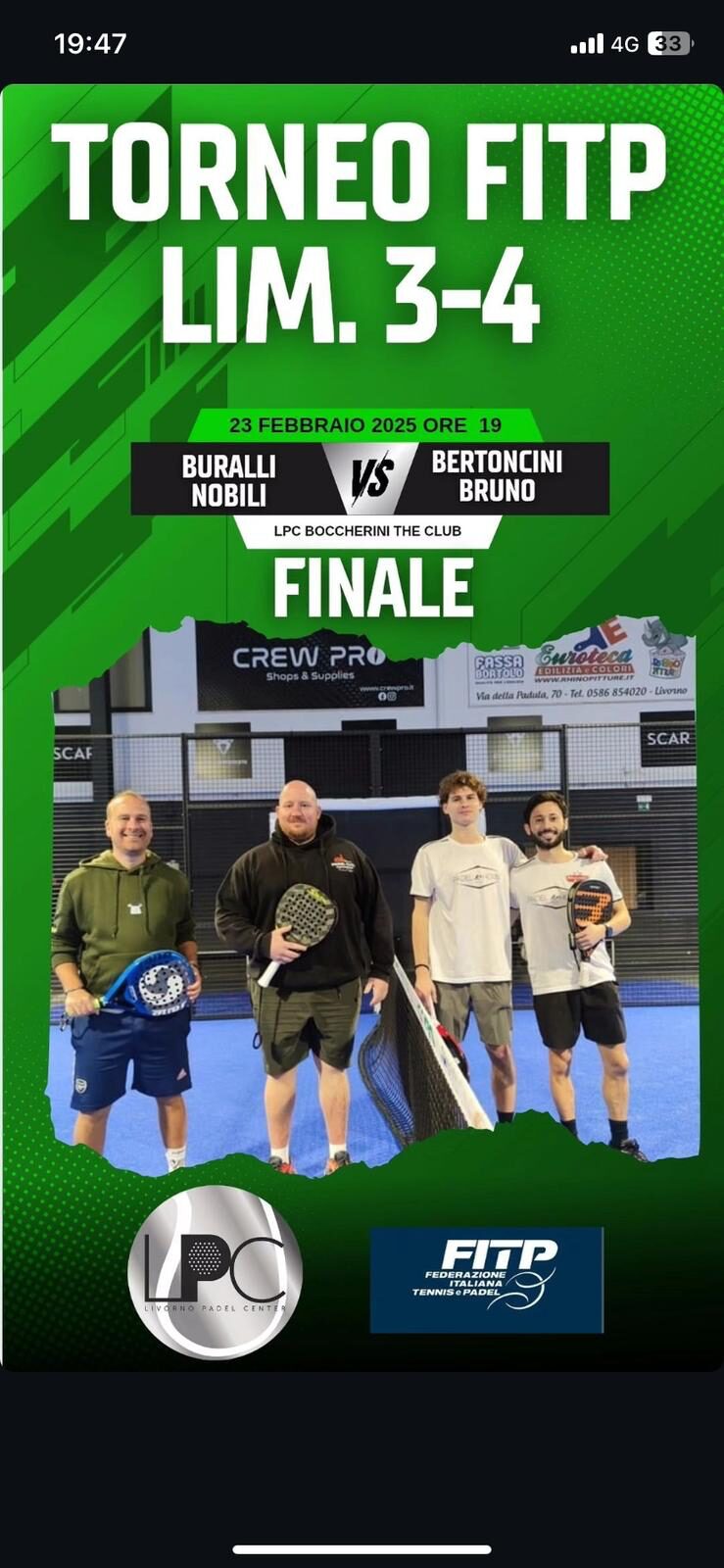 Nella giornata di domenica 23 febbraio l’istruttore Gabriele Nobili, affiancato da uno dei giocatori più talentuosi dell’isola, Francesco Buralli, si sono distinti tra numerosi partecipanti raggiungendo la finale in un torneo ufficiale delle Federazione Italiana Tennis e Padel, presso il Livorno Padel Center.