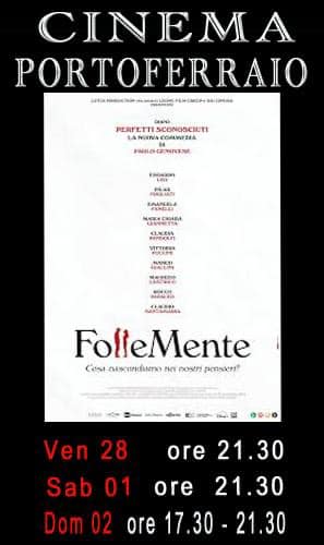 Nelle sale cinematografiche elbane sbarca il nuovo, geniale film del regista di “Perfetti Sconosciuti”, Paolo Genovese. “Follemente”, già definito una sorta di “Inside-out” in carne ed ossa, è la storia di un primo appuntamento visto dalla “testa” dei due protagonisti, mostrandoci come la nostra mente sia un posto davvero affollato. Un cast eccezionale (tra gli altri, Edoardo Leo, Pilar Fogliati, Rocco Papaleo, Claudia Pandolfi, Marco Giallini e Emanuela Fanelli) per una commedia romantica che, come al solito, ci farà divertire ma anche riflettere su noi stessi e le nostre emozioni.