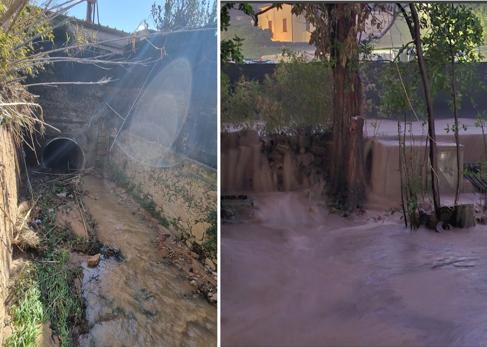 Le testimonianze dei cittadini che continuano ad arrivarci a due settimane dal nubifragio confermano che l’acqua è esondata inizialmente dal punto in cui il fosso si trasforma da fosso aperto – ma ristretto in sponde cementate – a tubo interrato sotto l’autolavaggio, e successivamente per tutta la lunghezza in cui il fosso confina con proprietà private. A monte, acqua e fango hanno allagato prima un giardino, risparmiando per miracolo un’abitazione, ma più a valle – fino ai locali in via Cacciò – le altre case non si sono salvate.