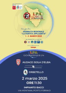 All’isola d’Elba, la prima “partita applaudita” si terrà domenica 2 marzo, alle 11:30, presso l’Impianto Bacci di via Mentana, a Portoferraio: protagonisti i ragazzi dell’Audace Isola d’Elba contro quelli dell’Orbetello.