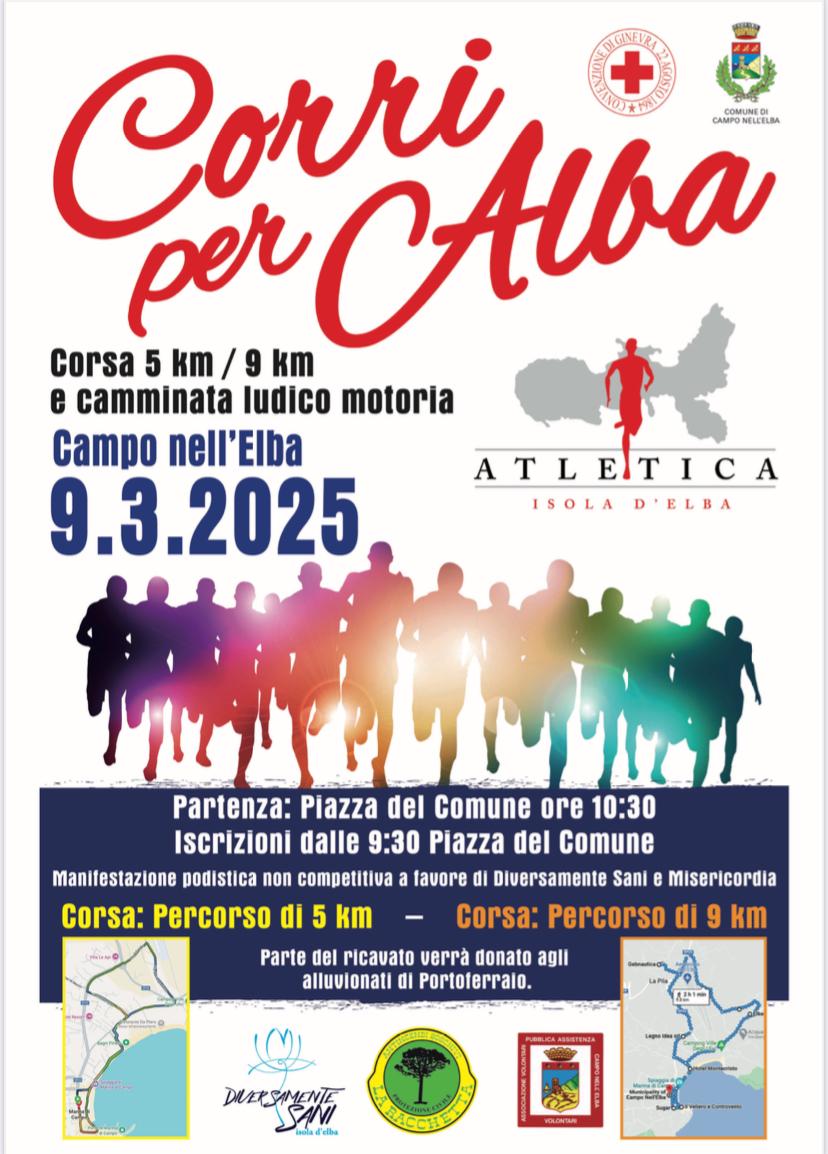 Domenica 9 marzo alle ore 1030 partirà l’edizione 2025 della Corri per Alba, attesa corsa cittadina che si svolgerà a Campo nell’Elba, in ricordo della podista Alba Giusti scomparsa alcuni anni fa: gli atleti si ritroveranno alla partenza in Piazza del Comune per le iscrizioni ma soprattutto per onorare la memoria di un’atleta e di un’amica.