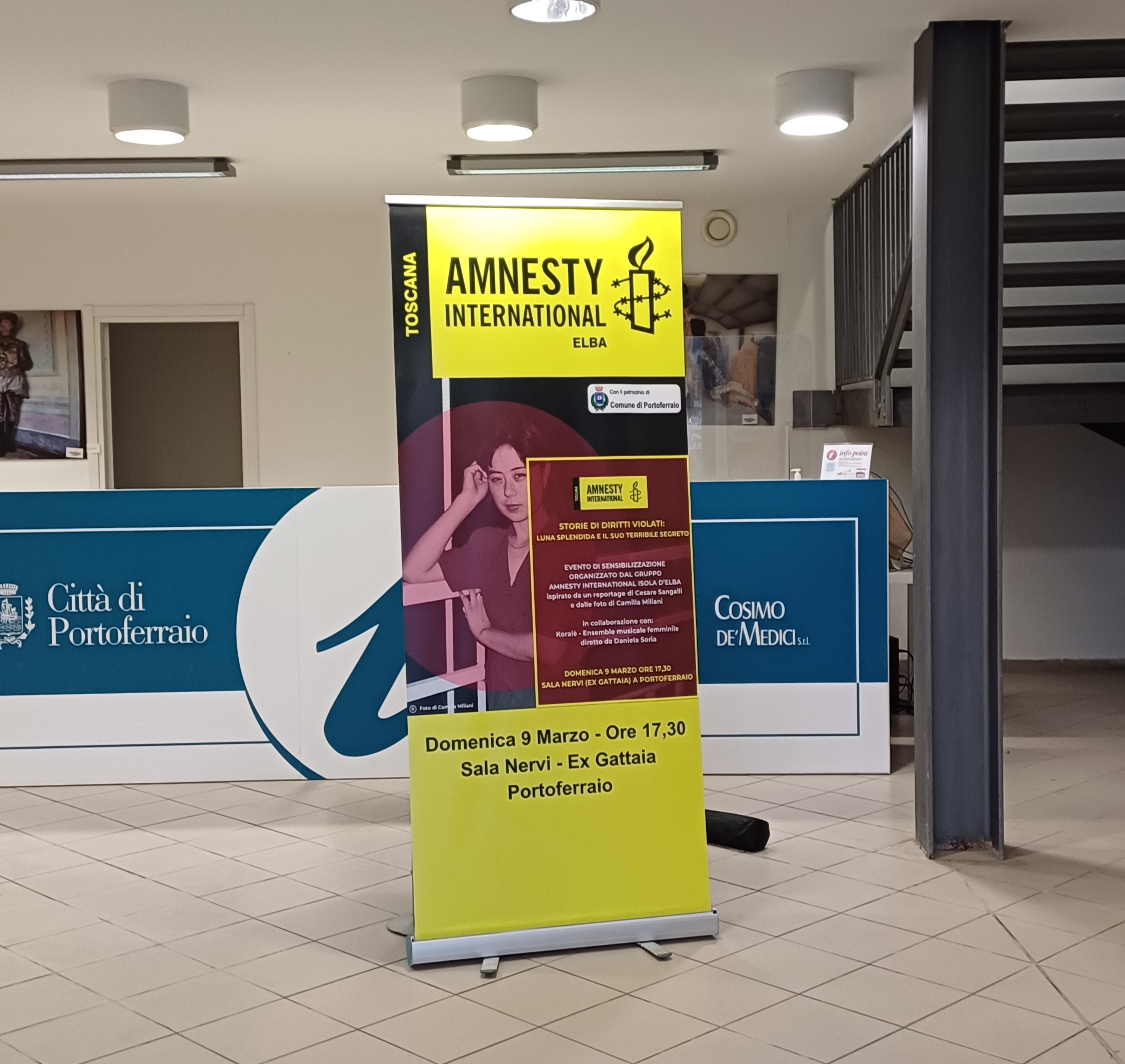 Una grande partecipazione ha segnato la serata di domenica 9 marzo presso la Sala Nervi (ex Gattaia) di Portoferraio, dove si è svolto l’evento “Storie di diritti violati: Luna Splendida e il suo terribile segreto”, organizzato dal Gruppo Amnesty International Isola d’Elba con il patrocinio del Comune di Portoferraio che ringraziamo.