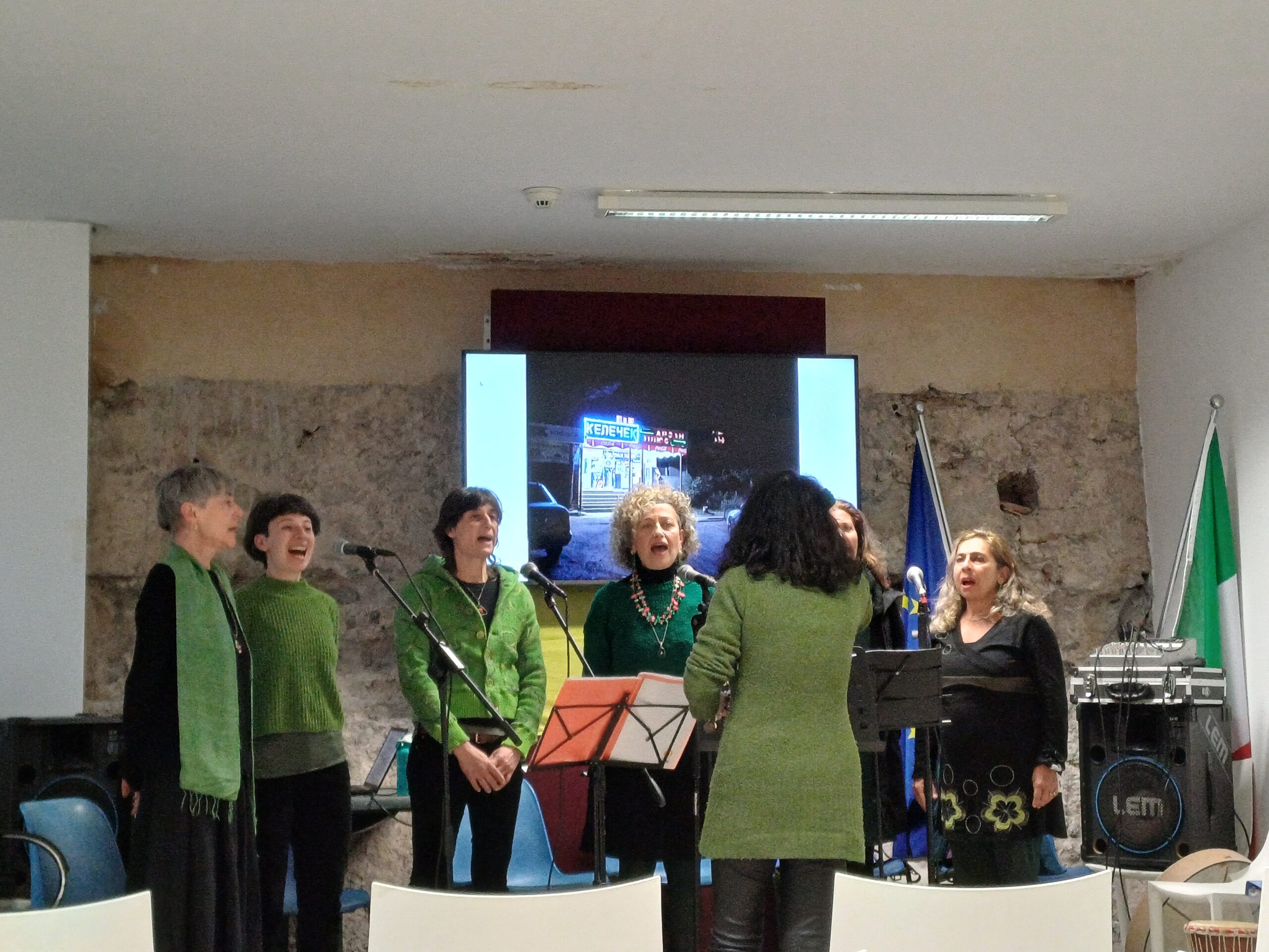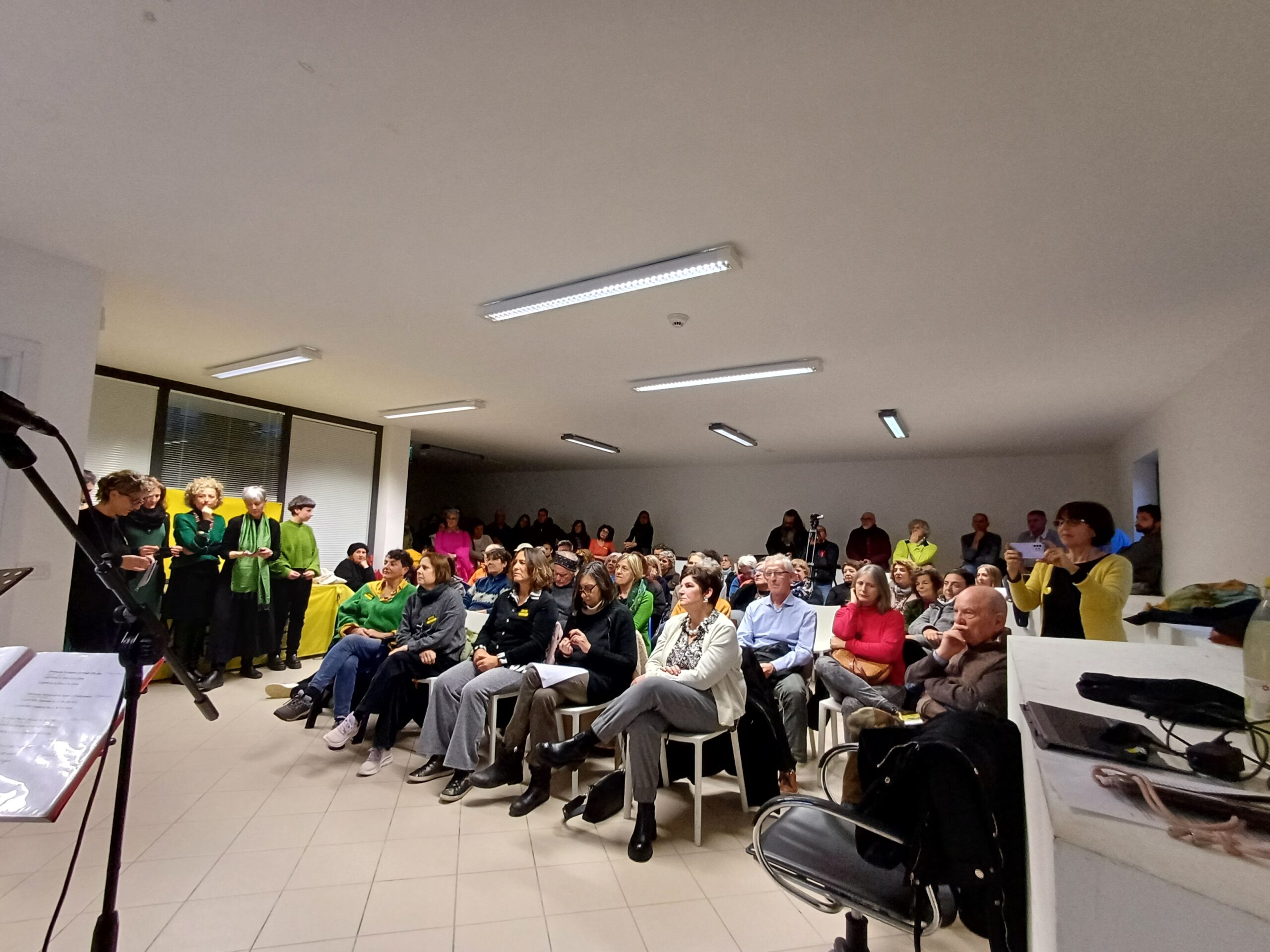 L’evento è stato reso ancora più intenso dall’esibizione dell’ensemble femminile “Koralè”, diretto da Daniela Soria e composto da Chiara Di Clemente, Daniela Rigon, Eleonora Brunetti, Francesca Ria, Noemi Alessi, Sara Esposito e Valeria Galbiati. Voci e percussioni hanno riempito la sala con canti popolari evocativi, amplificando l’emozione del racconto e creando un’atmosfera di grande impatto emotivo.