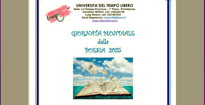 L’Università del Tempo Libero di Portoferraio è lieta di invitare la comunità a un evento speciale in occasione della Giornata Mondiale della Poesia 2025.