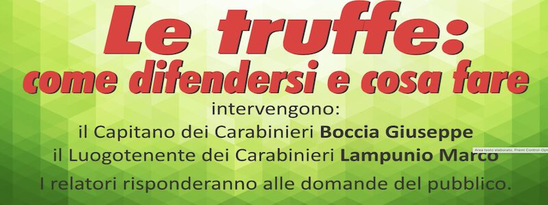 Negli ultimi anni sono sempre più frequenti i casi che vedono coinvolti, anche all’Isola d’Elba, anziani e non solo, in truffe telefoniche e informatiche, oltre a furti domestici. Per imparare a difendersi, a riconoscere le possibili truffe e capire cosa è più opportuno fare e a chi rivolgersi se abbiamo subito una truffa, l’AUSER ODV di Portoferraio organizza, in collaborazione con la Pro Loco e l’Arma dei Carabinieri Comando Compagnia di Portoferraio, un INCONTRO PUBBLICO presso LA SALA DELLA GRAN GUARDIA A PORTOFERRAIO il giorno 21 MARZO alle ore 17 .