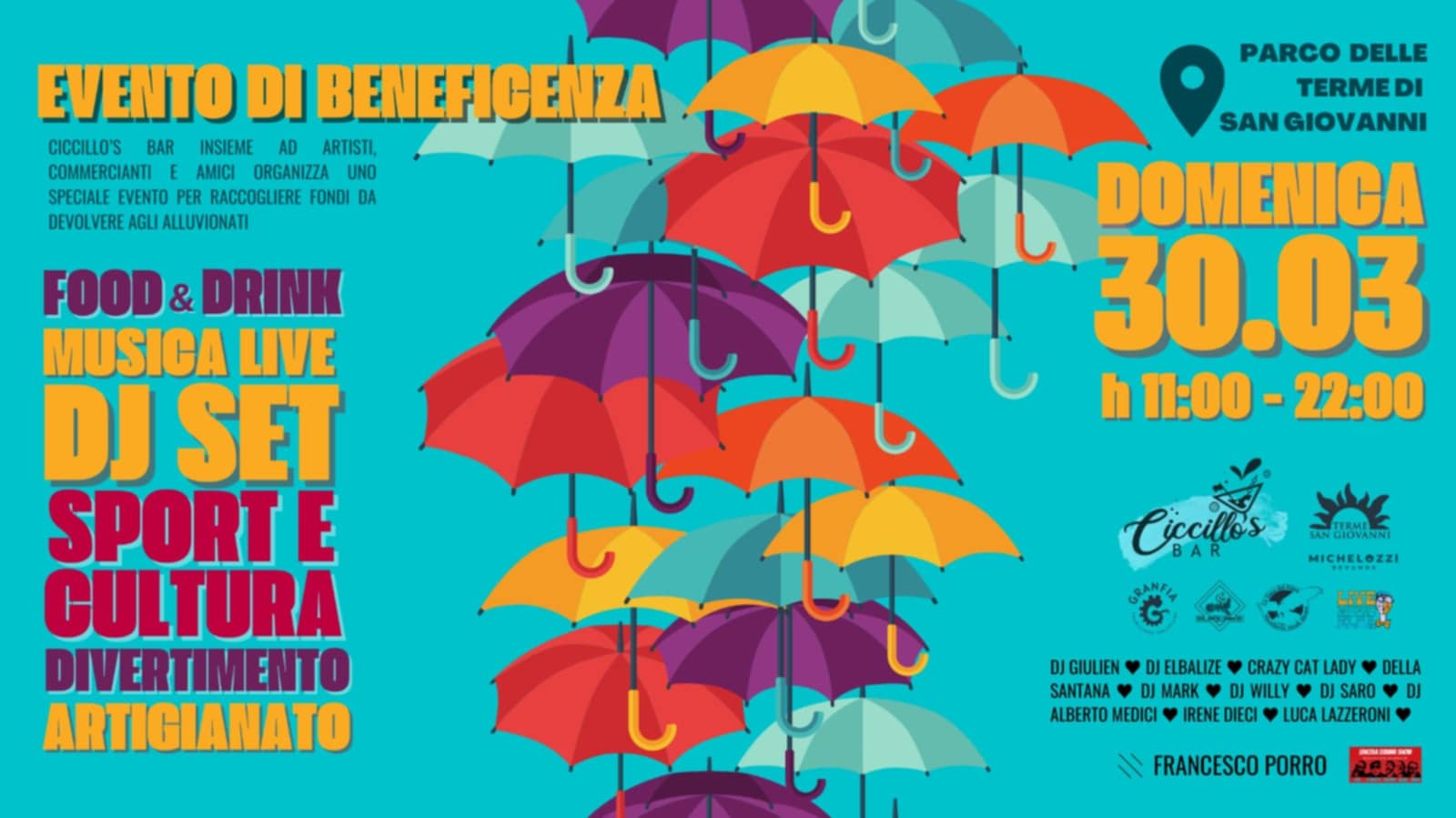 Domenica 30 marzo, dalle 11:00 e fino alle 22:00, le Terme di San Giovanni, un luogo simbolo di bellezza e benessere dell’Isola d’Elba, diventeranno il cuore pulsante della solidarietà e dell’impegno verso le persone colpite dall’alluvione del 13 febbraio. Un evento speciale nato dall’iniziativa di Ciccillo’s Bar, in collaborazione con artisti, commercianti e amici, per raccogliere fondi destinati alle vittime del nubifragio che ha devastato molte zone dell’isola. Sarà una giornata ricca di eventi, musica e intrattenimento, con tante attività per grandi e piccini.