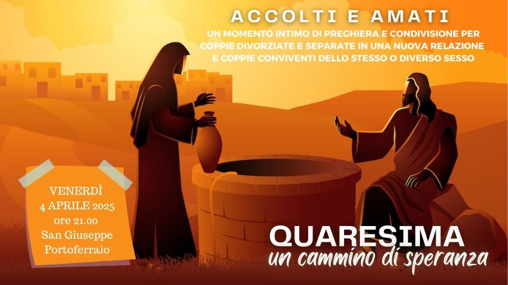 “La nostra comunità pastorale, insieme al Vicariato dell’Elba, è impegnata a trasmettere questo messaggio a tutti i settori della nostra società elbana” continua Don Kevin. “Infatti, nell’ambito del cammino quaresimale, venerdì 4 aprile, alle 21, presso la chiesa di San Giuseppe, avremo un momento speciale di preghiera e convivialità rivolta a tutte le coppie divorziate e separate, impegnate in una nuova relazione e anche per tutti i tipi di coppie conviventi. Aiutateci a portare questo invito a tutti i vostri conoscenti che vivono tali relazioni”.