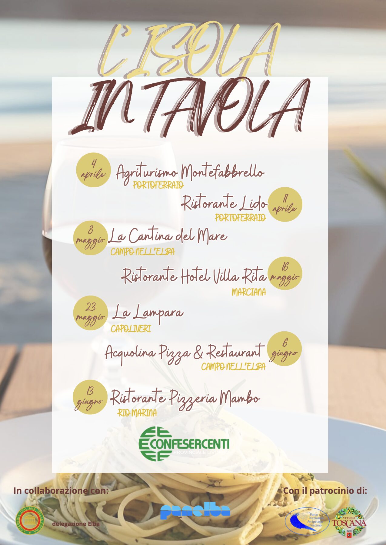 Confesercenti Isola d’Elba è lieta di annunciare l’inizio dell’ottava edizione de “L’isola in tavola”, la rinomata iniziativa gastronomica che celebra la ristorazione di qualità e la cucina tradizionale elbana, organizzata in collaborazione con l’Accademia Italiana della Cucina – Delegazione Isola d’Elba e con il patrocinio di Vetrina Toscana e del Parco Nazionale dell’Arcipelago Toscano. L’evento è sponsorizzato da Panelba.