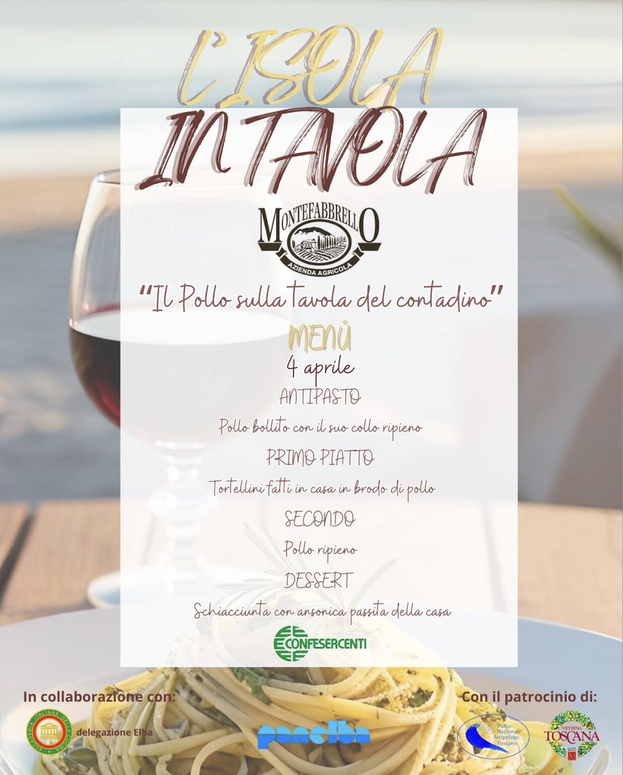 L’8^ edizione de “L’isola in tavola” si appresta a partire: venerdì 4 aprile, alle ore 20, primo appuntamento presso l’Agriturismo Montefabbrello. Il menù della serata inaugurale, intitolato “Il pollo sulla tavola del contadino”, ci riporterà indietro nel tempo, al tradizionale pasto contadino e celebrerà “Sua maestà il pollo”.