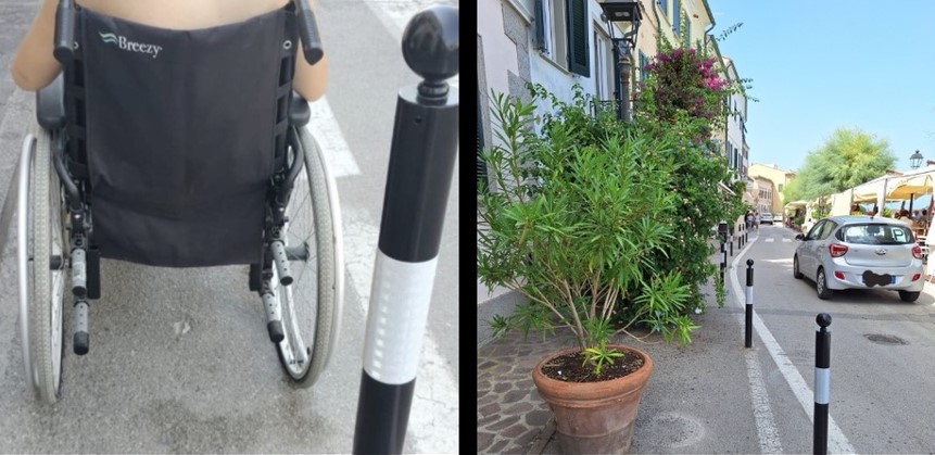 Come si può parlare di accessibilità quando si installano paletti che oggettivamente ostacolano il passaggio nel nostro delicato lungomare? Come si può transitare nel piccolo spazio tra il dislivello dei marciapiedi e questa fitta fila di pali neri? Quando a giugno 2024 abbiamo presentato un’interrogazione per denunciare il problema, la risposta della sindaca è stata un’arrampicata sugli specchi: i paletti sono «..oltre la linea continua che delimita la sede stradale» – come se questo bastasse a giustificarne la posizione. Nessuna parola sulle reali difficoltà che questi creano, nessuna considerazione sul rischio concreto per chi si muove con carrozzine o deambulatori.