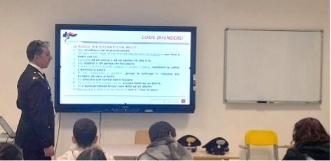 In virtù della grande familiarità e quindi della notevole esposizione delle nuove generazioni nei confronti della tecnologia e del web, un’attenzione particolare è stata posta su quegli accorgimenti che consentano loro di evitare di incorrere in pericoli che la rete può nascondere in maniera subdola. Durante la giornata sono state affrontate, infatti, tematiche come bullismo e cyberbullismo, che hanno particolarmente attirato l’attenzione degli studenti. Si è passati poi alla trattazione dei temi inerenti ai “social network”, disvelando agli studenti i potenziali pericoli, anche in relazione alla salvaguardia dei dati sensibili. In questo settore, i consigli dei carabinieri hanno riguardato gli atteggiamenti e le condotte che è opportuno evitare in rete, con la raccomandazione di fare sempre riferimento a genitori ed insegnati per un confronto o un intervento in caso di necessità.