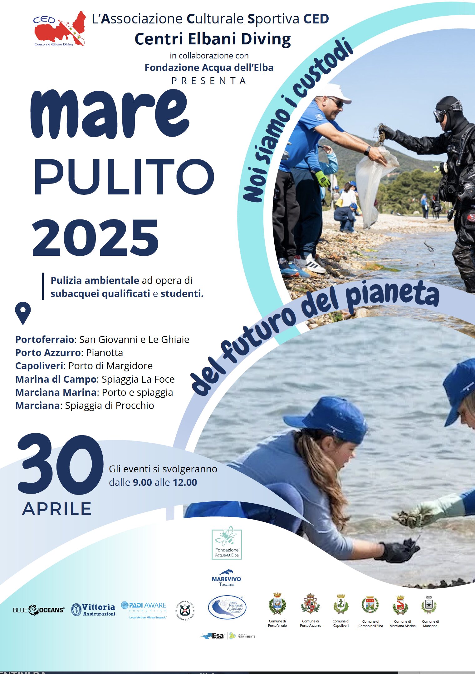 Il prossimo 30 aprile, l’Isola d’Elba sarà protagonista di una grande iniziativa di sensibilizzazione e tutela ambientale con l’edizione 2025 del progetto “Mare Pulito”, promosso dall’Associazione Culturale Sportiva CED – Centri Elbani Diving, in collaborazione con la Fondazione Acqua dell’Elba e Marevivo Toscana.