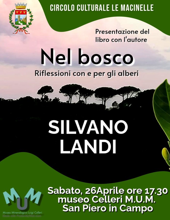 Sabato 26 aprile alle ore 17.30, presso il Museo Mineralogico L. Celleri, il Circolo Culturale Le Macinelle ed il Mum avranno il piacere di ospitare Silvano Landi che parlerà del suo libro “ Nel bosco. Riflessioni con e per gli alberi”.