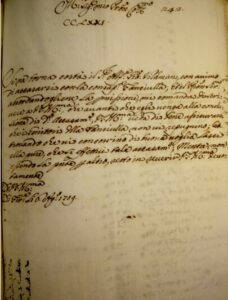 (6 Agosto 1709 .Lettera di Pier Antonio Gerini al governatore di Portoferraio. Per l’alfiere Vilalmassi prima